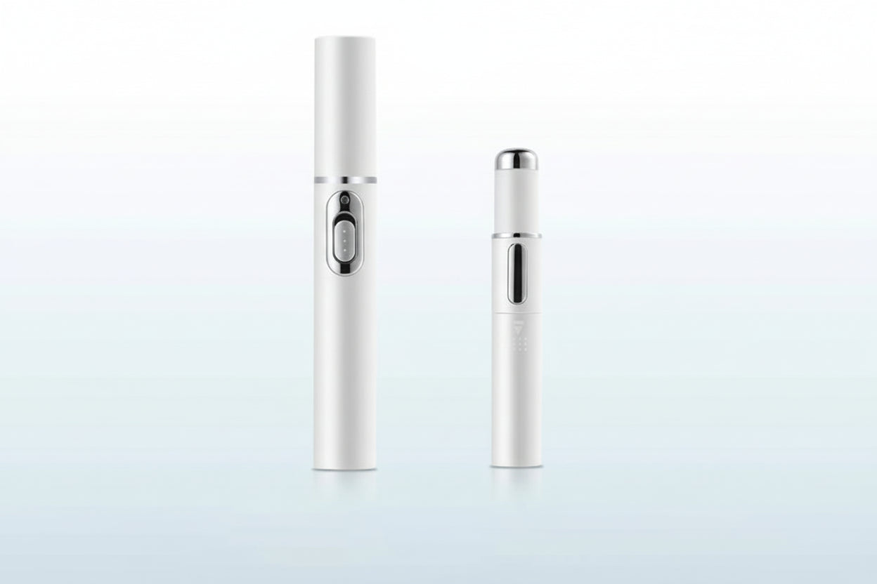 Dispositivo de belleza facial diseñado para el cuidado del contorno de ojos. Combina masaje suave con luz azul para ayudar a reducir ojeras y bolsas, mejorar la textura de la piel y mantener una apariencia más fresca y descansada.